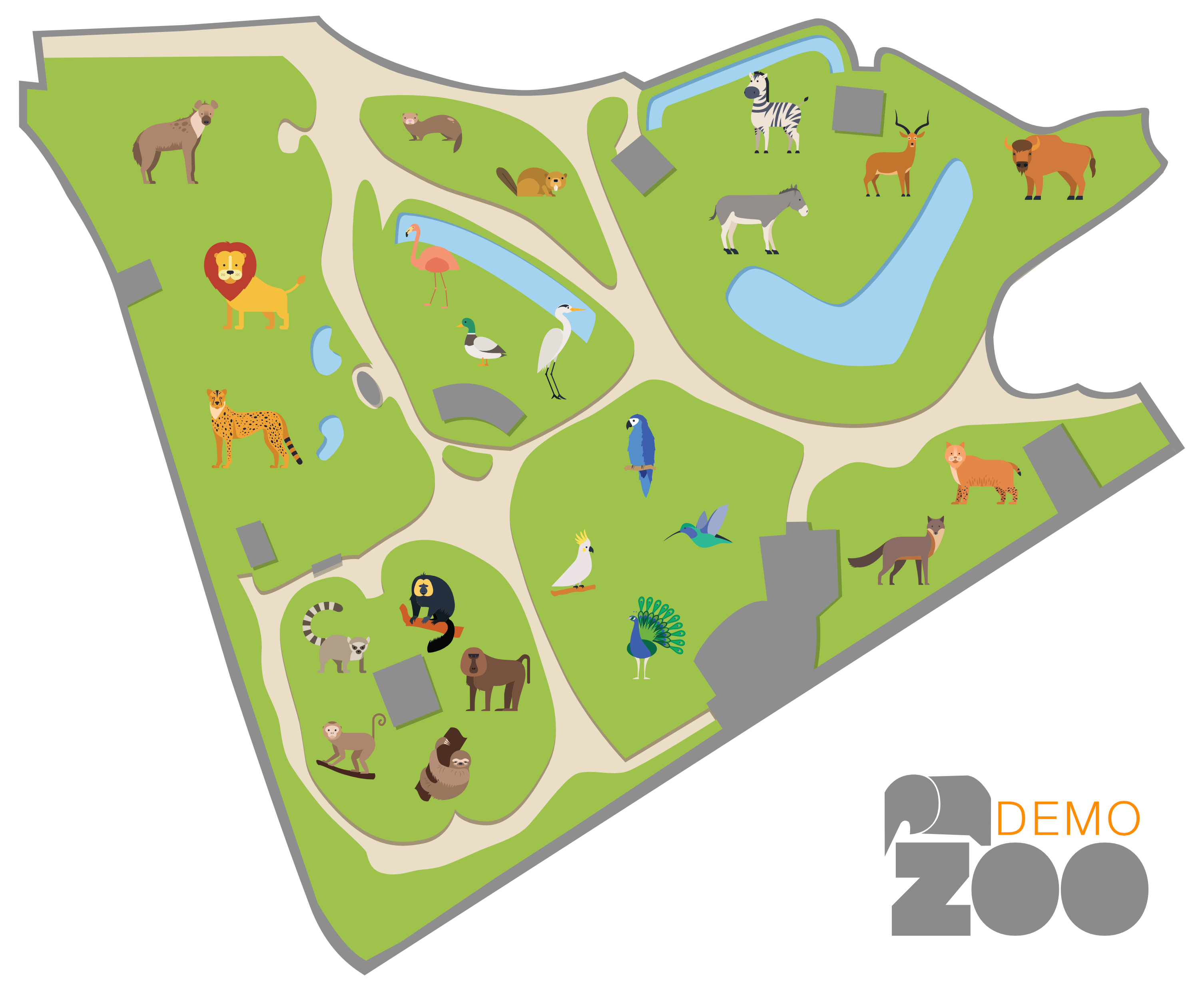 Zur Veranschaulichung unseres Map-Produkts haben wir ein kleines Demo-Projekt zum Thema Zoo ins Leben gerufen. Die interaktive Karte bildet hier eine Übersicht der Gehege ab. Der Besucher kann ein bestimmtes Gehege (einen Kartenabschnitt) auswählen und erhält so Informationen zu den dort lebenden Tieren. Ein Hover-Effekt lässt den Nutzer dabei erkennen, welche Bereiche in der Karte anklickbar sind.